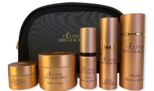 L’Elixir Des Glaciers orders of over £625 (£750 inc Vat) receive a FREE stylish pouch which contains: 15ml Votre Visage, 5ml Vos Yeux, 5ml Votre Visage Serum Précieux, 3ml Serum Merveilleux, 10ml Fluide Merveilleux - with a value of £412 (£495 inc Vat). The free pouch will not appear as an item in your cart, but it will be added when orders are prepared at our premises in Knightsbridge, London.